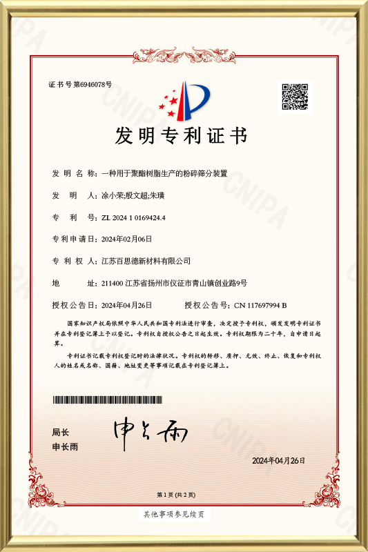 Besd nova materiae 'S New Project of producendo 100,000 tons of polyester resina ad pulveris coatings perficitur et posuit in productionem in Yangzhou eget industriae parcum in MMXIX. Project opercula area de 40.000 quadratum metris et constructione area de circiter quadratum metris et constructione circiter quadratum metra et constructione 27,000 quadratum metris.